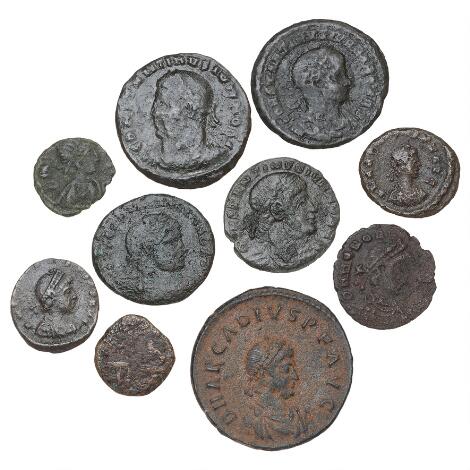 2545/5024Roman Empire, coll. of late Roman bronze coins from Constantius II, 337-340, Honorius, 393-423, Arcadius, 395-408, Marcian, 450-457, in total 9 pcs