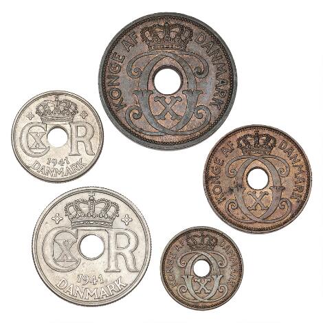 Faroe Islands, official coinage, 1 øre - 25 øre 1941, complete set. Nice specimens with some luster. (5)