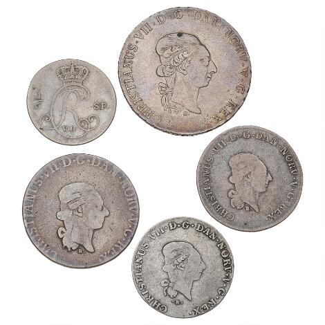 Christian VII, Schleswig-Holstein, small collection of coins, in total 5 pcs