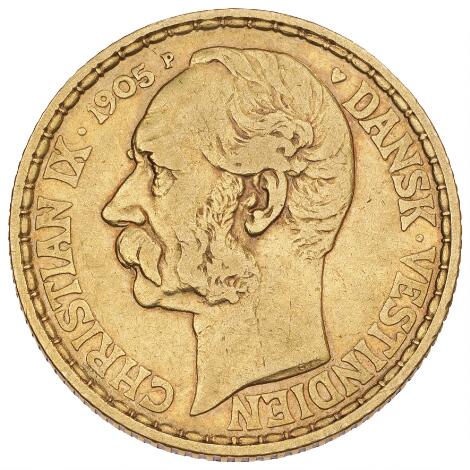 Danish West Indies, Christian IX, 20 francs / 4 daler 1905, H 30, F 2, KM 72