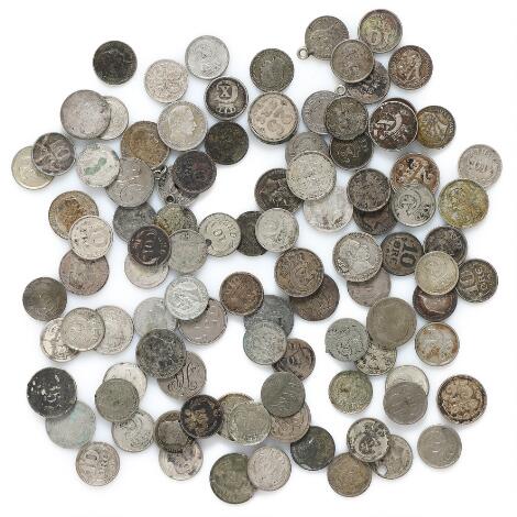 Collection of Danish 10 and 25 øre coins, in total 100 pcs of which some have been made into love tokens