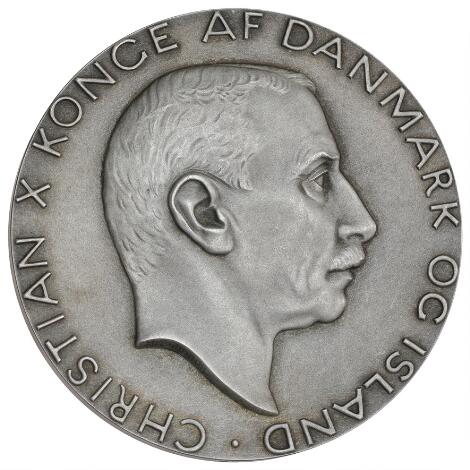 Christian X, K.D.Ys Æresformand, rev.: For God Styring, Lindahl, Ag, 40 mm, 33,00 g - sjælden