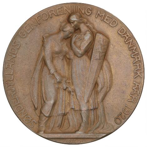 Christian X, Genforeningsmedalje, 1919, af A. Hansen, 46 mm, bronze, 39,56 g.
