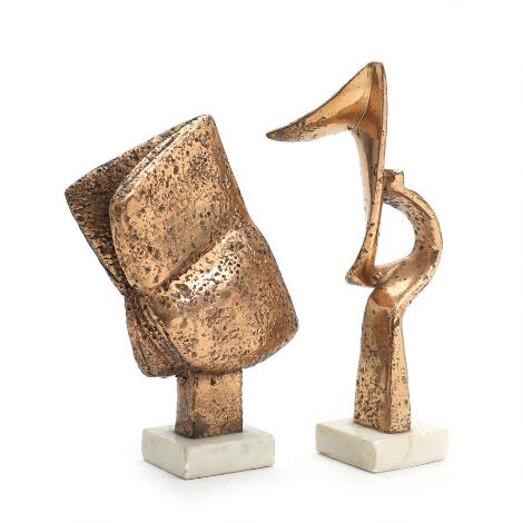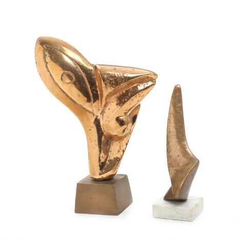 Knud Erik Christensen: "Avis" og uden titel. Usignerede. Bronze. H. 17 og 20 cm. (2)