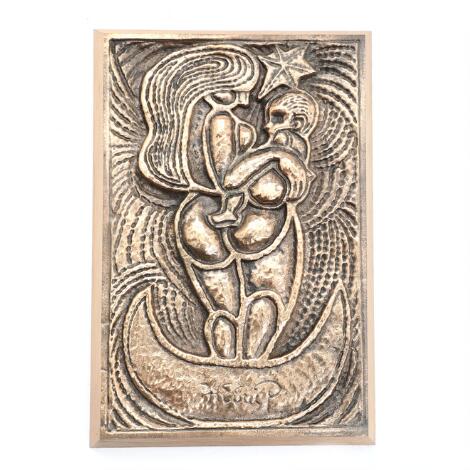 Henry Heerup: ''Stjernebarnet''. Signeret Heerup. Relief af patineret bronze. 24 × 16 cm.