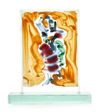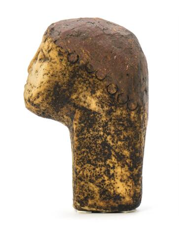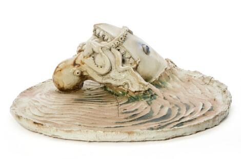 Maria Rubinke: Uden titel. Signeret Maria Rubinke, 133/150. Polykromt glaseret porcelæn, på sokkel af træ. H. 7 cm. B. 10 cm. D. 10 cm.