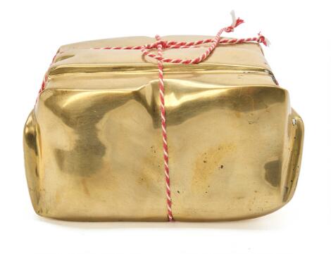 Lise Honoré: Lille gave. Signeret Lise Honoré - 99, 10/300. Skulptur af messing og snor. H. 6. L. 11,5 cm.