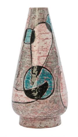 Vilhelm Bjerke-Petersen: Vase af polykromt dekoreret og glaseret stentøj. Signeret V. Bjerke Petersen - 52. Udført hos Rörstrand, Sverige. H. 27,5 cm.