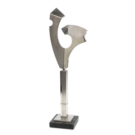 Børge Jørgensen: Skulptur af mat- og blankpoleret stål. H. inkl. base 47.