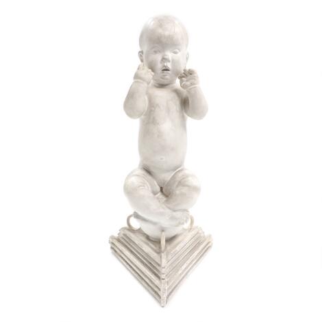 Kai Nielsen: "Nina på kuglen". Usigneret. Patineret gips. H. 68 cm.