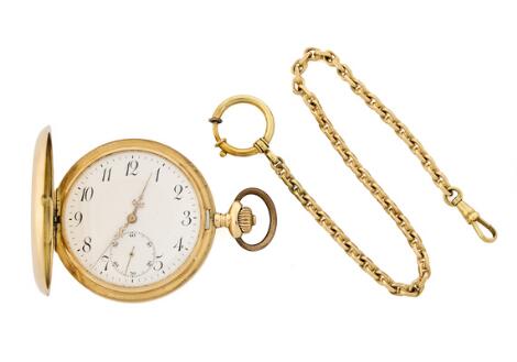 Dobbeltkapslet lommeur af 14 kt. guld. Mekanisk værk med ankergang og kroneoptræk.