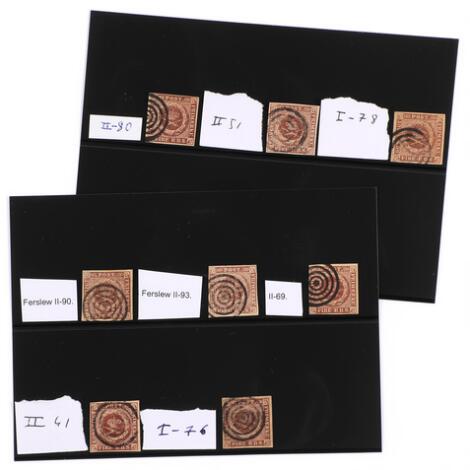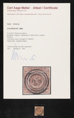 1851-1854. 4 RBS. Lille samling på 5 stk. flotte mærker med attester.