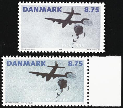 1995. Befrielsen, 8,75 kr. flerfarvet. PRØVETRYK i ændret farve og med anderledes gravør/kunstnertekst i bunden etc. Meget sjældent