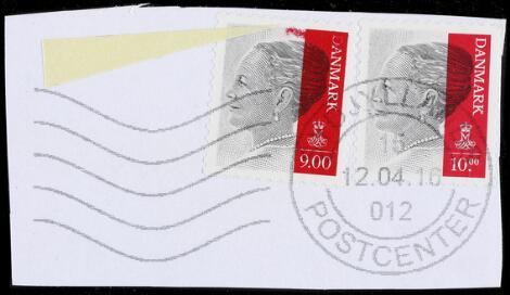 2014. Dr. Magrethe, 9 kr. variant "STOR FARVESTREG OVER HOVEDET TIL HEN OVER D". Interessant fejl på brevstykke med 10 kr.
