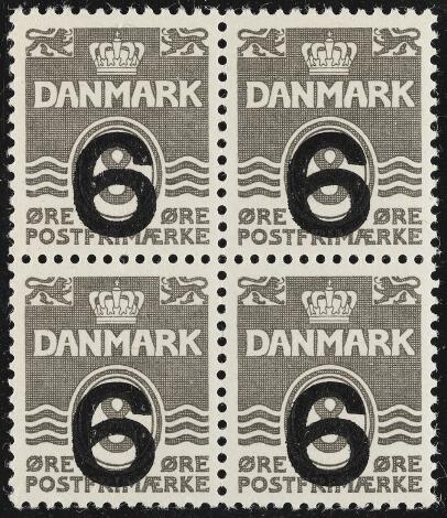 1940. 6/8 øre, type I. Postfrisk 4-blok.