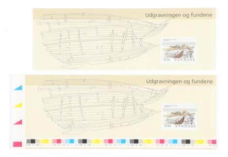 2004. Vikingeskibsmuseet, 12,50 kr. flerfarvet. Ark fra prestigehæfte i "OVERSTØRRELSE" og med trykfarver etc. vist i bunden af arket. Ikke tidligere set