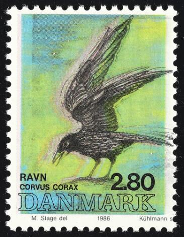 1986. Danske Fugle, 2,80 kr. flerfarvet. Variant "STÆRKT FORSKUDT FARVE" (så fuglen fremstår dobbelt!). Postfrisk. Sjælden variant