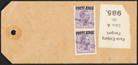 1919. Chr. X, 15 øre. 2 stk. på manilla FANØ-ESBJERG FÆRGERI. Litra A. Nr. 985.