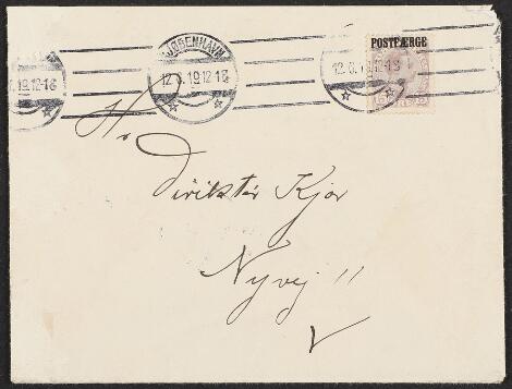 1919. Chr. X, 15 øre, matlilla. Single på brev anvendt som alm. postfrimærke stemplet KJØBENHAVN 12.6.19.