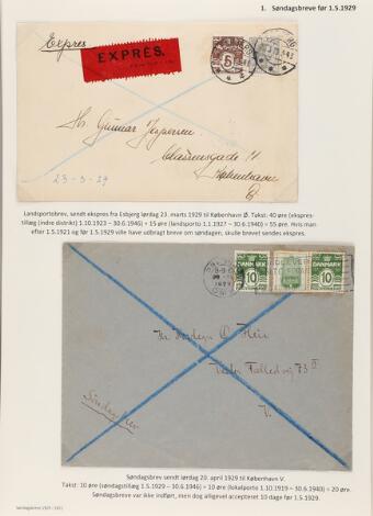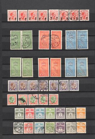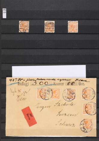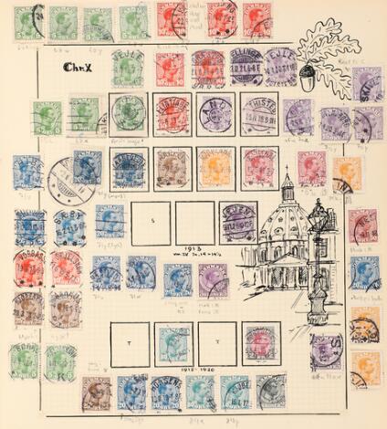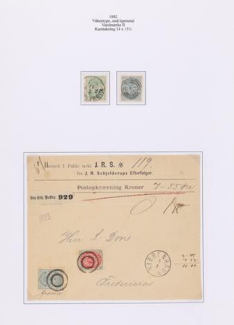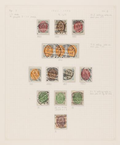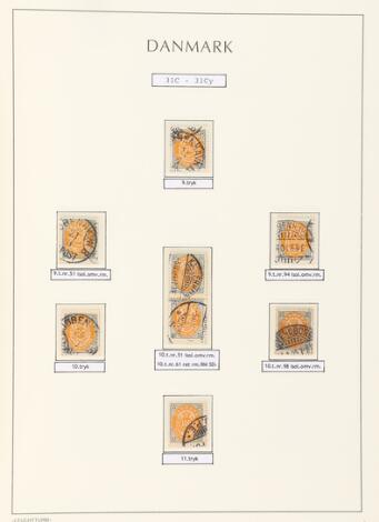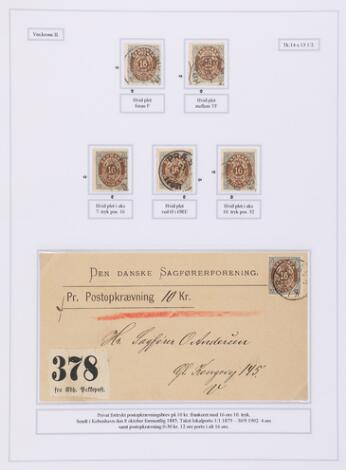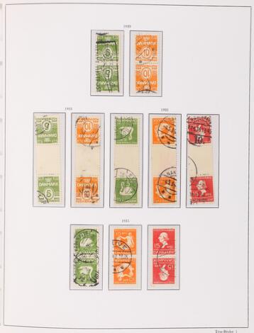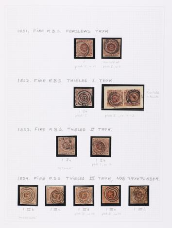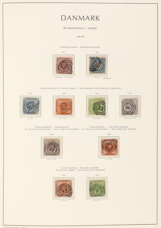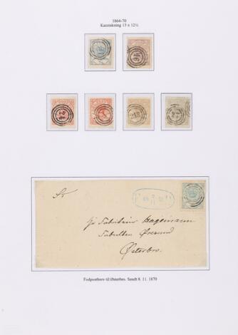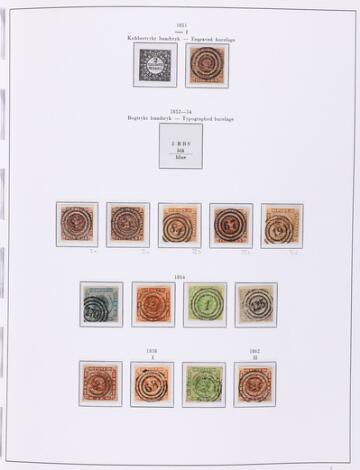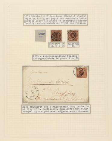 1851-1930. Særdeles velbesat og specialiseret samling opsat i 10 springbind. Indeholder store afsnit skillingsmærker incl. 2 RBS Ferslew og 2 RBS Thiele (løst