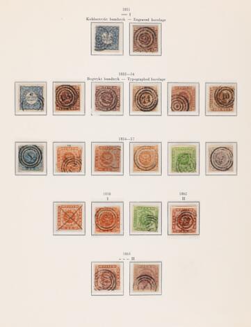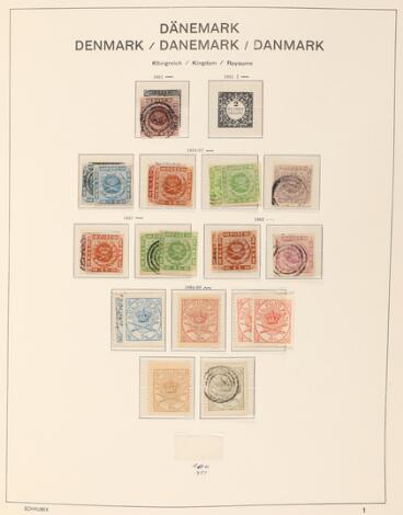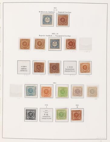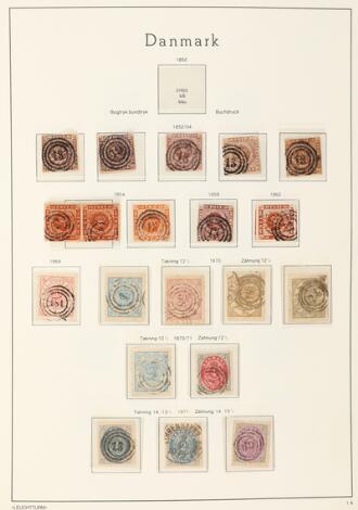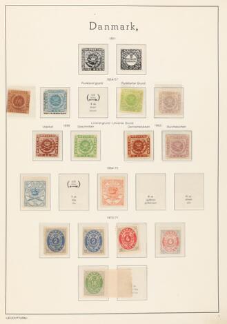 1851-1930. Gammel samling opsat til udstillingsbrug i 3 Lindner-album. Indeholder mange bedre mærker, varianter og forsendelser. Bør ses