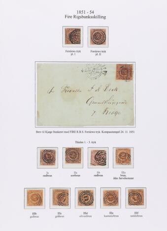 Danmark. 1851-1988. Postfrisk/ubrugt samling startende med 4 RBS Ferslew, 2 RBS Thiele (beklippet), pæn 16 sk. 1854 og 16 sk. 1863, pæne afsnit Tofarvet