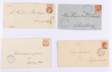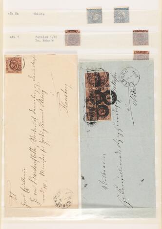 1851-1863. Specialiseret samling KVADRATER opsat med breve og varianter etc. Mange bedre udgaver iblandt. Skal ses