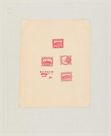 1924. Postjubilæum. Lille samling Prøvetryk og utakkede udgaver m.v. Opsat til udstillingsbrug