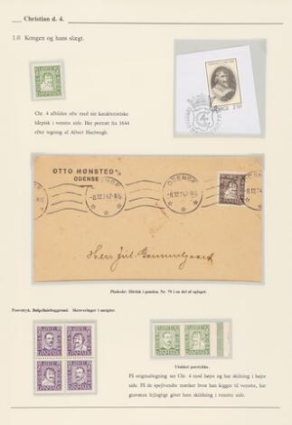 Danmark. Tofarvet 4 øre. Flot tryk og positions bestemt samling i 4 bind samt æske med løse mærker med mængder af Perlefejl, set TYKKE RAMME og andre isolerede