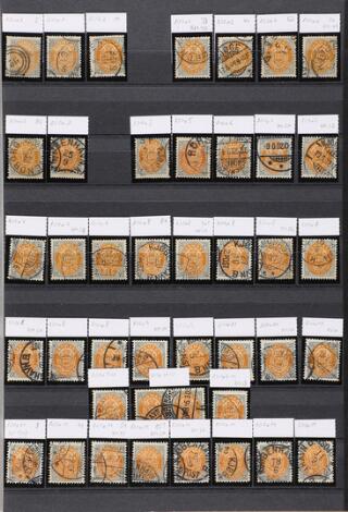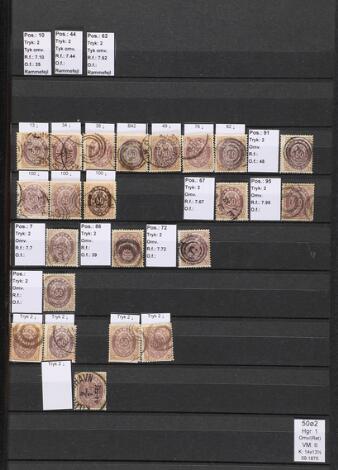 1882-1902. Specialiseret parti VÅBENTYPE udgaver opsat på plancher og løsblade etc. Indeholder mange Små Hjørnetal, bedre varianter, stempler osv. osv.
