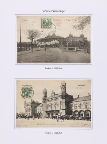 Danmark. Samling FORSIDEFRANKERINGER i 5 ringbind med mange flotte frankeringer samt bedre og mange topografiske postkort og bedre destinationer iblandt.