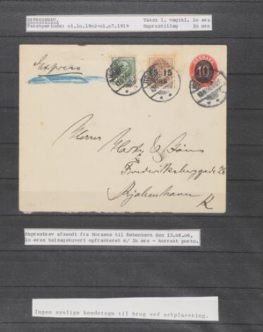 1875-1902. Blandet og delvist specialiseret parti TOFARVEDE ØREMÆRKER i album og på løse sider. En del bedre og brugbare maærkler iblandt