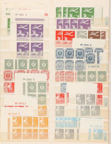 Danmark. Lagerparti i 3 meget velfyldte indstiksbøger med mange bedre udgaver og mange mærker i meget stort antal. Desuden indstiksbog med DVI og Julemærker.