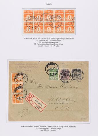 1920. Genf. 20 øre, blå. Specialsamling i album samt indstiksbog med 1000vis af fundne varianter inkl. flere AFA noteret med bl.a. mange 113p (1600 kr) og 113n
