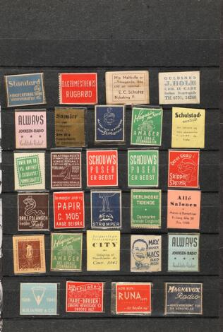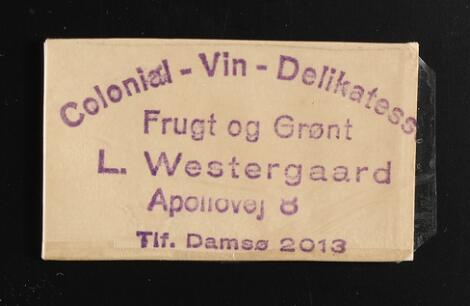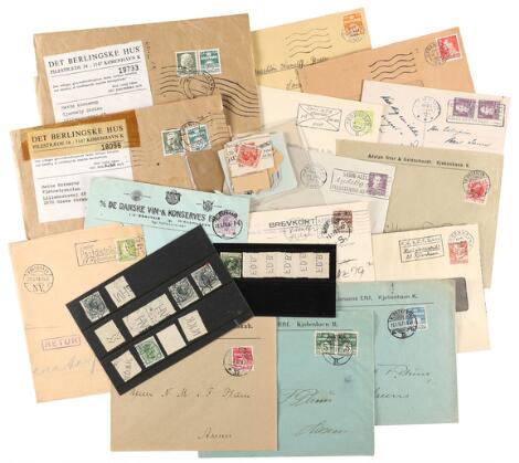 Frimærkepenge. Binder with many different incl. Colonial-Vin-Delikatesse Frugt og Grønt L. Westergaard with both 1 øre and 2 øre stamps in same "wrapping". Also