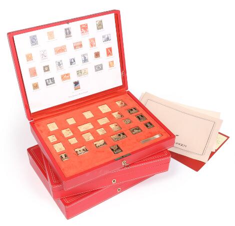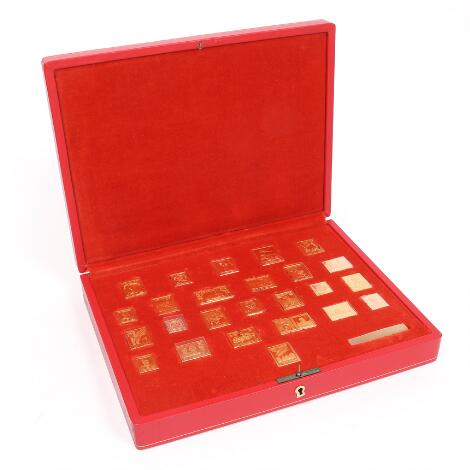 "Pax Danica". 3 complete collections of each 25 goldplated silver stamps. Only 1 key!