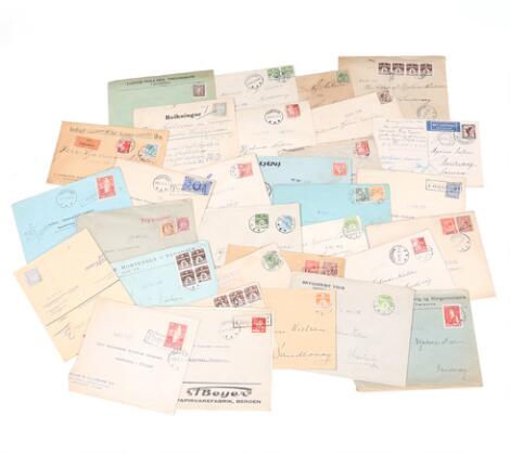 Færøerne. 1915-1942. Meget spændende original korrespondance med breve og kort sendt internt på Færøerne og til øerne fra forskellige andre lande.