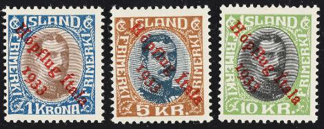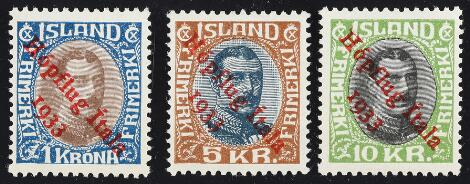 Island. 1873-1954. Meget interessant gammel samling opsat til udstillingsbrug i 3 Lindner-album. Indeholder diverse skillingmærker, en del Ovaludgaver
