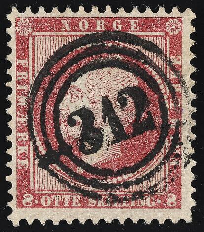 Norway. 1856. Oscar, 8 sk. Very fine used 312 "TROMSØ".