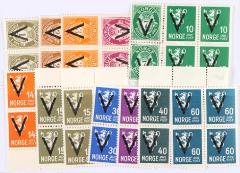 1941. V-issues with wmk. Complete set in MNH cond in blocks of 4 excl. 50 øre.