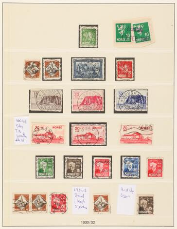 Norway. 1930-32. Small coll. on 4 pages with i.e. page with very fine cancellations incl. complete set Nordkapp and some varieties.