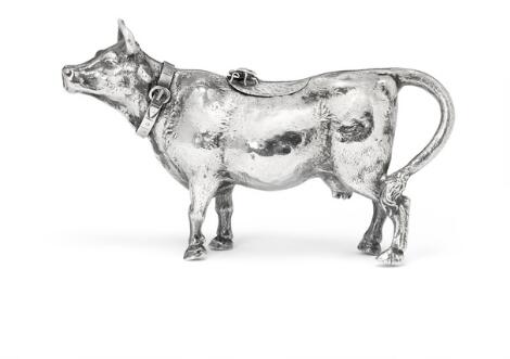 Flødekande af sterlingsølv i form af en ko. Forhandlet af Berthold Muller, London 1895-1896. H. 9 cm. L. 14,5 cm.