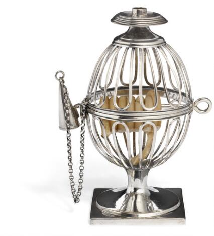 Stabelstage af sølv, korpus i form af vireværk. Antagelig Frankrig, før 1789. Vægt 190 g. H. 15 cm.
