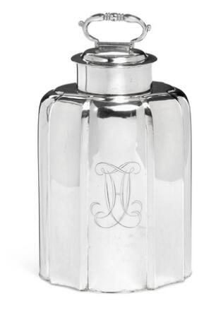 Dansk Régence tedåse af sølv. Mester Knud Rasmussen Brandt, Horsens 1737-1785. Vægt 596 g. H. 17 cm.
