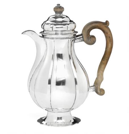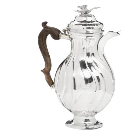 Dansk rokoko kaffekande af sølv. Mester Eiler Mortensen, København 1766. Vægt 870 g. H. 31,5 cm.