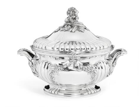Stor fransk terrin af sølv. Ca. 1900. Lødighed 950, fransk eksportstempel. Vægt 5.957 g. H. 34 cm.