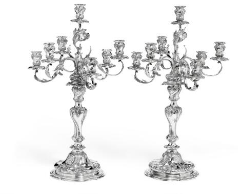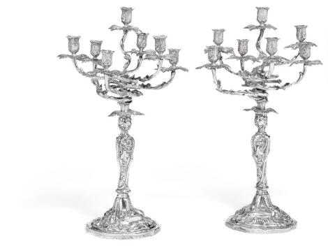 Et par tyske nyrokoko syv-armede kandelabre af sølv. Rudolf Weichhardt, Berlin. 19. årh.s slutning. H. 60 cm. (2)