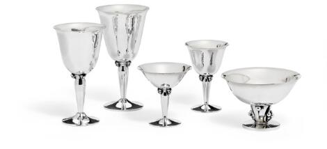 Sæt på 54 danske bægre af sterlingsølv. H. Wilhelm F. Jensen, Bagsværd 1970-1991. H. fra 7 cm. til 14,5 cm. (54)