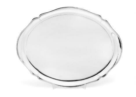 Stor dansk serveringsbakke af sølv. A. Michelsen, København 1917. Vægt 3.452 g. L. 67 cm. B. 52 cm.