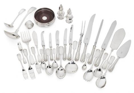 "Riflet violinmønster med musling" - engelsk bestik af sølv, 187 dele, i kommode. R. Carr Ltd., Sheffield 1997. (192)